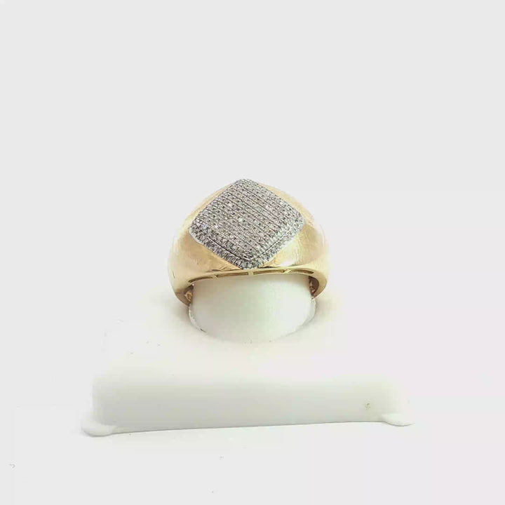 10K 0.35 Yellow Gold Diamond Pave Cushion-Top Signet Ring