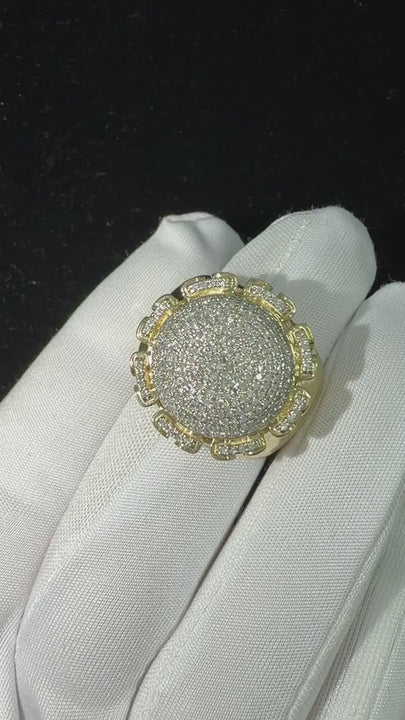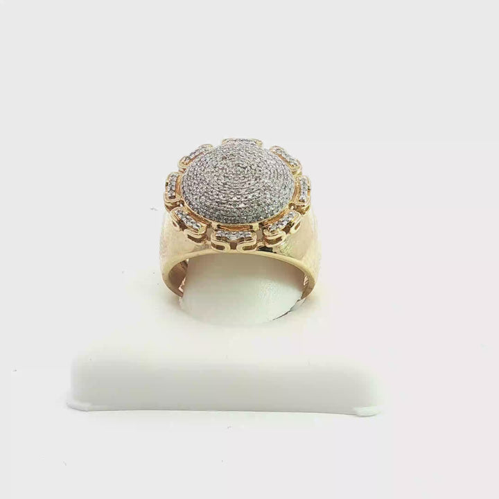 Exquisite yellow gold cocktail ring featuring a meticulously crafted design with floral-inspired motifs. The center is anchored by a brilliant round cut diamond, showcasing exceptional clarity and a high-grade polish for maximum brilliance. Its intricate arrangement boasts textured metalwork and refined symmetry, creating a bold yet elegant silhouette. This sophisticated piece combines professional craftsmanship with premium materials, making it a timeless statement of luxury and artistic composition.