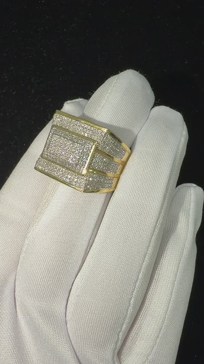 Exemplifying classic elegance, this yellow gold signet ring features a prominent round brilliant cut diamond at its center. The diamond displays exceptional cut grade and fire, secured in a flush setting within a polished gold plate. The substantial shank transitions smoothly into wide shoulders, showcasing a high-polish finish that enhances its luxurious appearance. This composition combines traditional craftsmanship with modern brilliance, offering a timeless piece of jewelry with excellent symmetry and radiant yellow gold tones.