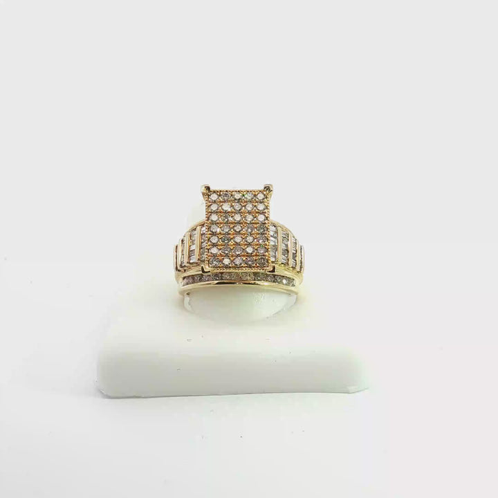 Exemplifying timeless luxury, this sophisticated cocktail ring is masterfully crafted in 18k yellow gold. The centerpiece features a brilliant round cut diamond, meticulously set within an intricate bezel and wirework gallery. Its superior polish and symmetry highlight the diamond's exceptional transparency and fire. The vintage-inspired composition and polished finish create a radiant harmony, making this a classic addition to any fine jewelry collection.