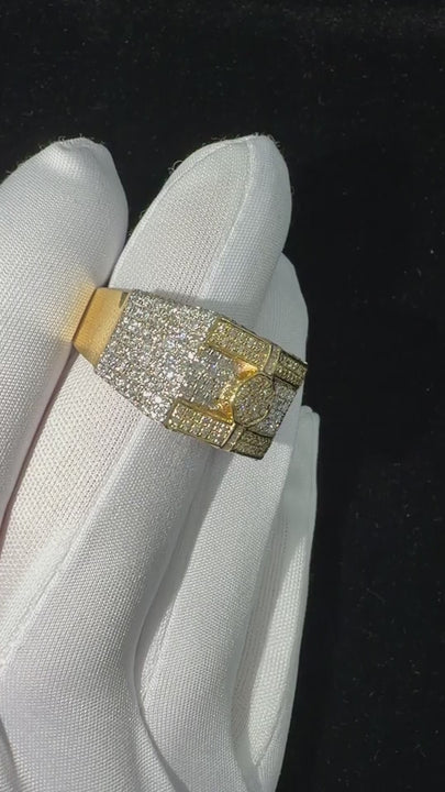 Exemplifying classic elegance, this yellow gold signet ring features a masterfully set round brilliant cut diamond at its center. The central diamond boasts exceptional clarity and color, radiating brilliance from a secure starburst-inspired setting. Its polished flat-top surface transitions into a smooth, tapered shank for maximum comfort. This piece combines a bold silhouette with fine gemstone craftsmanship, making it a sophisticated choice for modern luxury and timeless style.