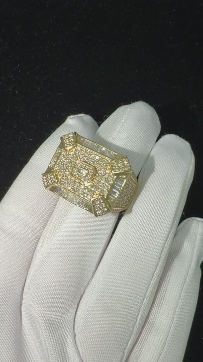 An exquisite yellow gold cocktail ring showcasing a stunning emerald cut diamond at its center. The primary diamond features a sophisticated step cut, radiating exceptional clarity and brilliance. This elegant piece is meticulously crafted with a high polish finish, emphasizing the geometric precision and symmetry of the central stone. The warm tones of the yellow gold setting provide a luxurious contrast, creating a timeless and sophisticated arrangement perfect for high-end collections and special occasions.