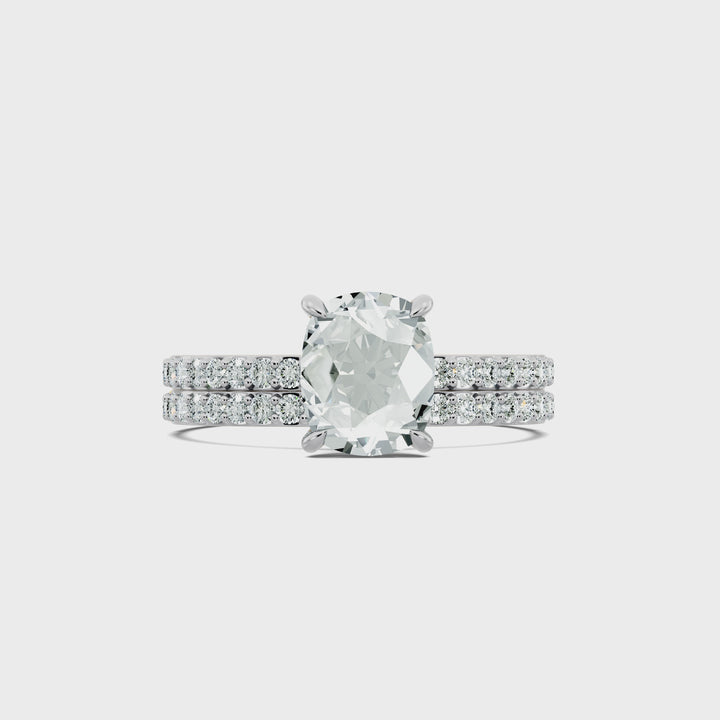 Bold brilliance meets timeless craftsmanship in this breathtaking cushion-cut diamond ring. At the center sits a striking radiant cushion-cut diamond, expertly secured in a refined four-prong setting that allows maximum light to pass through every facet. The result is exceptional fire, clarity, and undeniable presence.